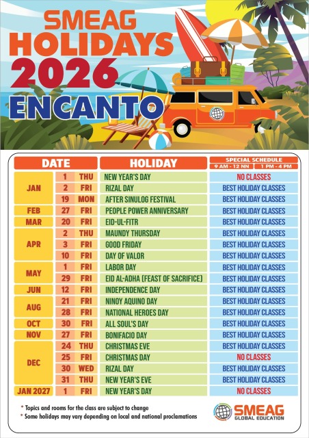 祝日のスペシャルクラスはトピックや教室に応じて変更されることがあります。