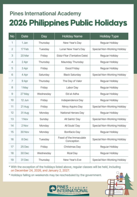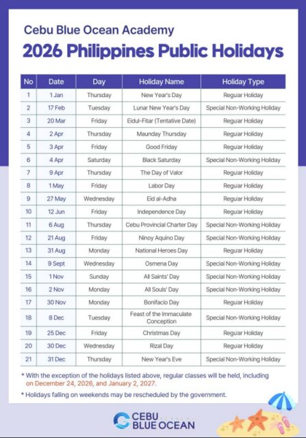 あわせて、2026年のフィリピン祝日カレンダー が公開されました。