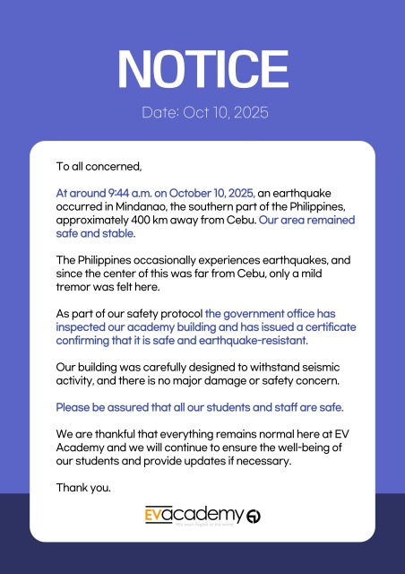 今回の地震でもEVアカデミーの迅速な避難対応と安全体制が確認されました。