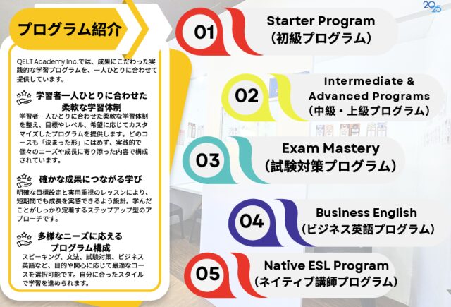 ベテラン講師が活躍するQELT Academyはゼロベースからスピーキングを伸ばす指導を得意とします。