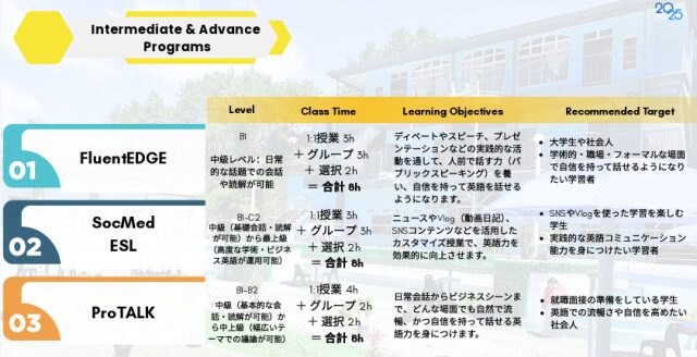 Intermediate & Advance Pregram(中級プログラム一般英語コース)