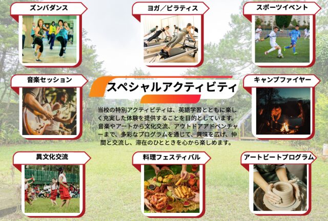 主に週末を中心に行い、海外生活に不安のある生徒様や、多国籍の友達を作りたい方をサポートします。