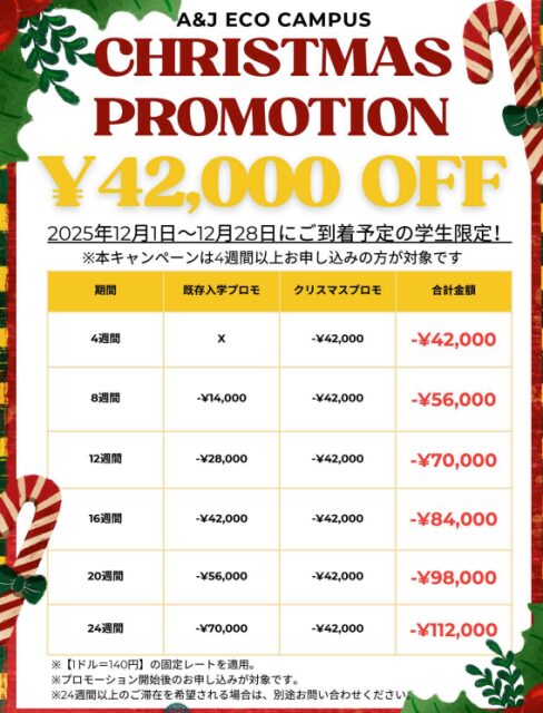 年末留学を検討している方に嬉しい【クリスマス限定プロモーション】情報もありますので、ぜひ最後までチェックしてください