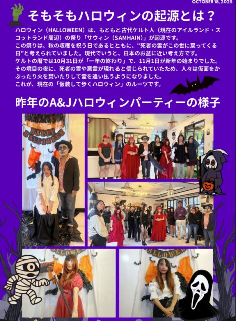 イベント盛りだくさんのシーズンに英語学習を楽しめるのはA&Jならでは。