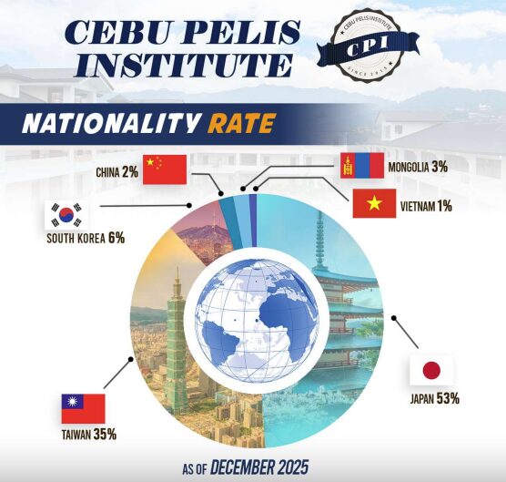 フィリピン・セブ島で人気の語学学校 CPI(Cebu Pelis Institute) から、2025年12月時点の最新「校内国籍比率」が届きました。