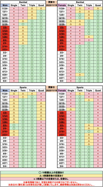 ただし、繁忙期は非常に動きが早いため、最新情報はお問い合わせいただくのが確実です。