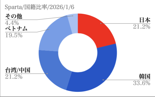 国籍バランスが比較的良い