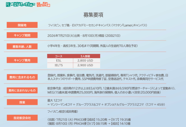 👉 ジュニアキャンプ期間のため、親子留学は受け入れ不可